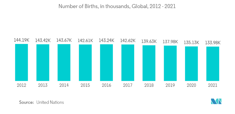 Although in recent years, the number of births per year has been decreasing, with increased awareness about baby hygiene, the sales of premium and good quality products are growing simultaneously. Globally, the number of newborn babies was 135,132,602 in the 2021.