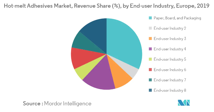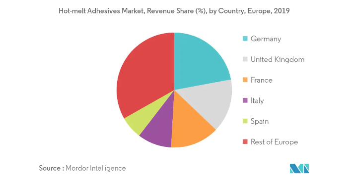The Europe hot-melt adhesives market is estimated to witness a significant growth, at an estimated CAGR of over 5.5%, over the forecast period. Increasing demand from the packaging industry and rising environmental concerns regarding solvent-borne adhesives are expected to drive the market during the forecast period.