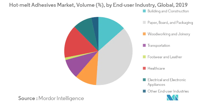 The most crucial market for hot-melt adhesives has been packaging. The production of tapes and labels has been experiencing immense growth. The improvement in living standards and higher incomes, especially in developing countries, have increased the demand for a broad range of products, all of which require packaging. Moreover, the growing market for e-commerce and online purchasing is providing huge support and opportunities to the hot-melt adhesives market.